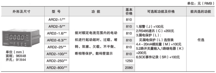 | ARD3T輔助電源 | AC/DC 110 / 220V或AC 380V,功耗≤15VA | ||