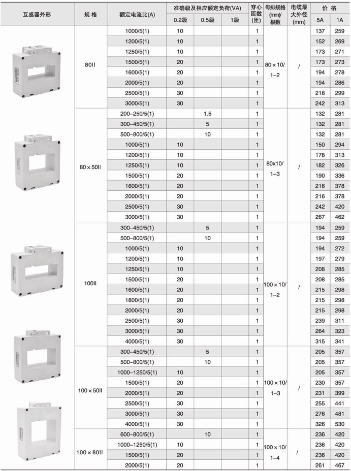 80I 150/5(1)     2.5 1 80×10/1 Φ50 A,C