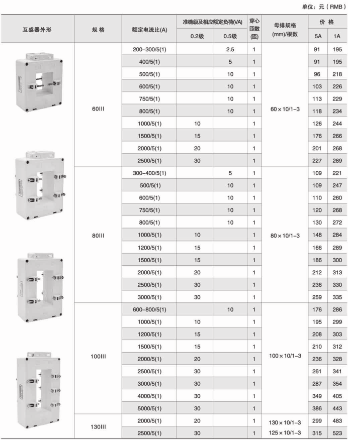 該系列互感器作為交流電流信號采集元件,可與測量儀表配套使用,一次電流測量范圍5-6300A,二次輸出5A或1A,測量范圍為額定值的5-120%。