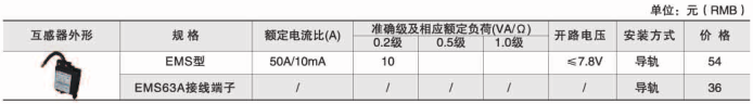 EMS 50A/10mA 10     3kV ≤7.8V -20℃~70℃ 導軌