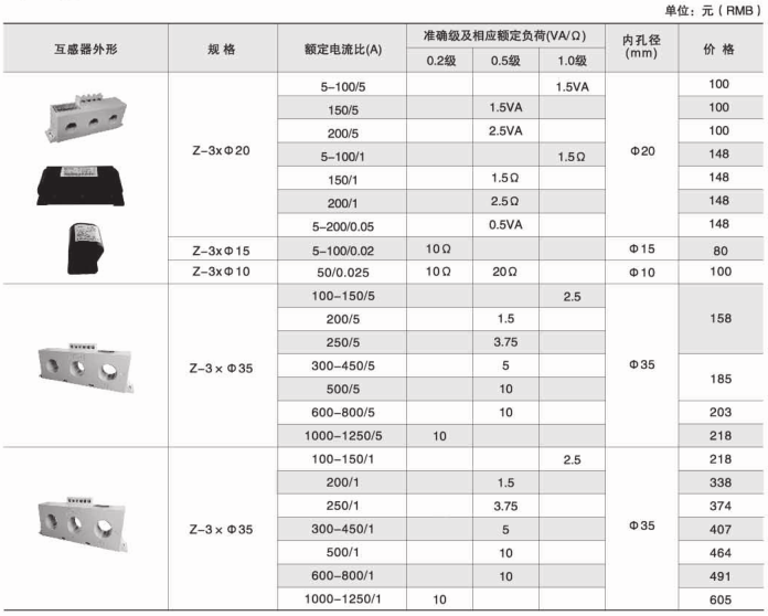 Z-3×Φ20 5-100/5A   1.5VA Φ20