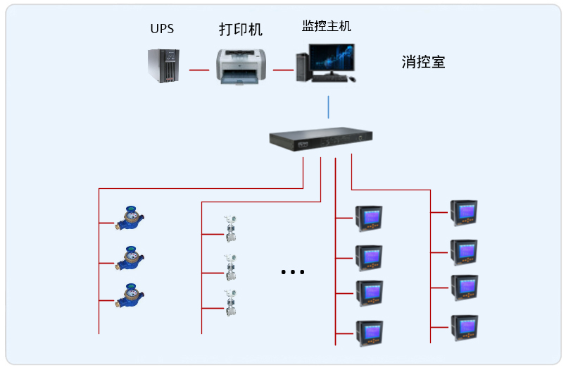 系統采用Acrel-5000型能耗監控系統,整個系統采用網絡分布式結構,監控主機位于消防監控室中,所有配電回路均配備安科瑞電力儀表PZ系列,以及一些水表。該項目實現了銀川建發大閱城?凱悅酒店能耗系統的智能管理,所有監控設備均通過屏蔽雙絞線至后臺的通訊管理機,從而實現遠程監控。
